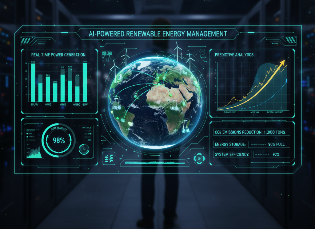 Image AI: AI-powered energy management dashboard monitoring renewable energy sources.